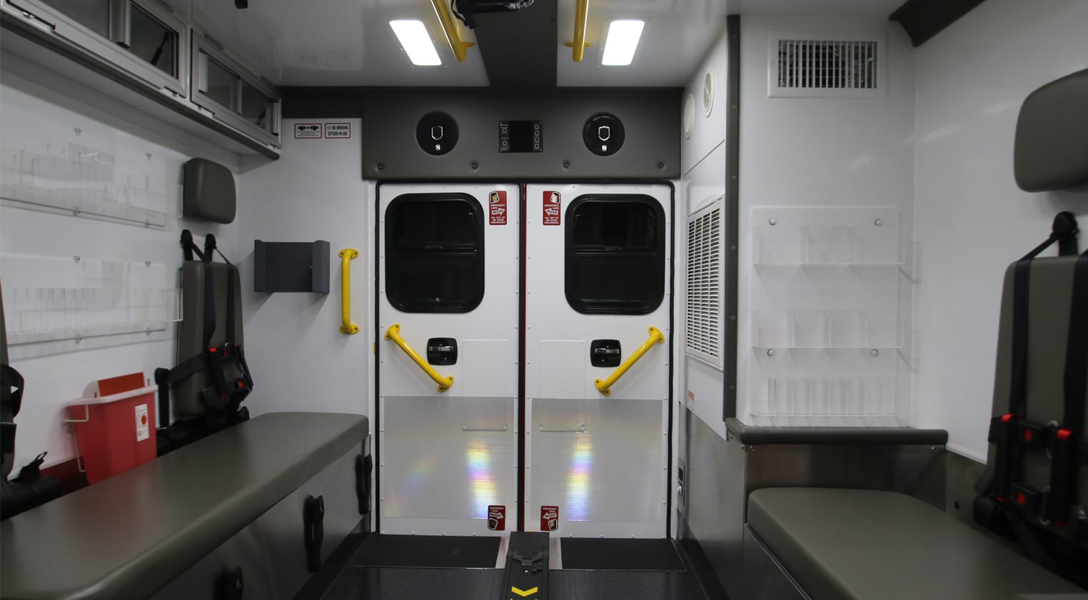 This custom built 14 ft. type I EMS vehicle is mounted onto a new RAM 5500 diesel chassis and features a LiquidSpring™ suspension, MEPS under-hood generator, and Austin Hardware & Supply Inc. LifeDefender Cabinets.
