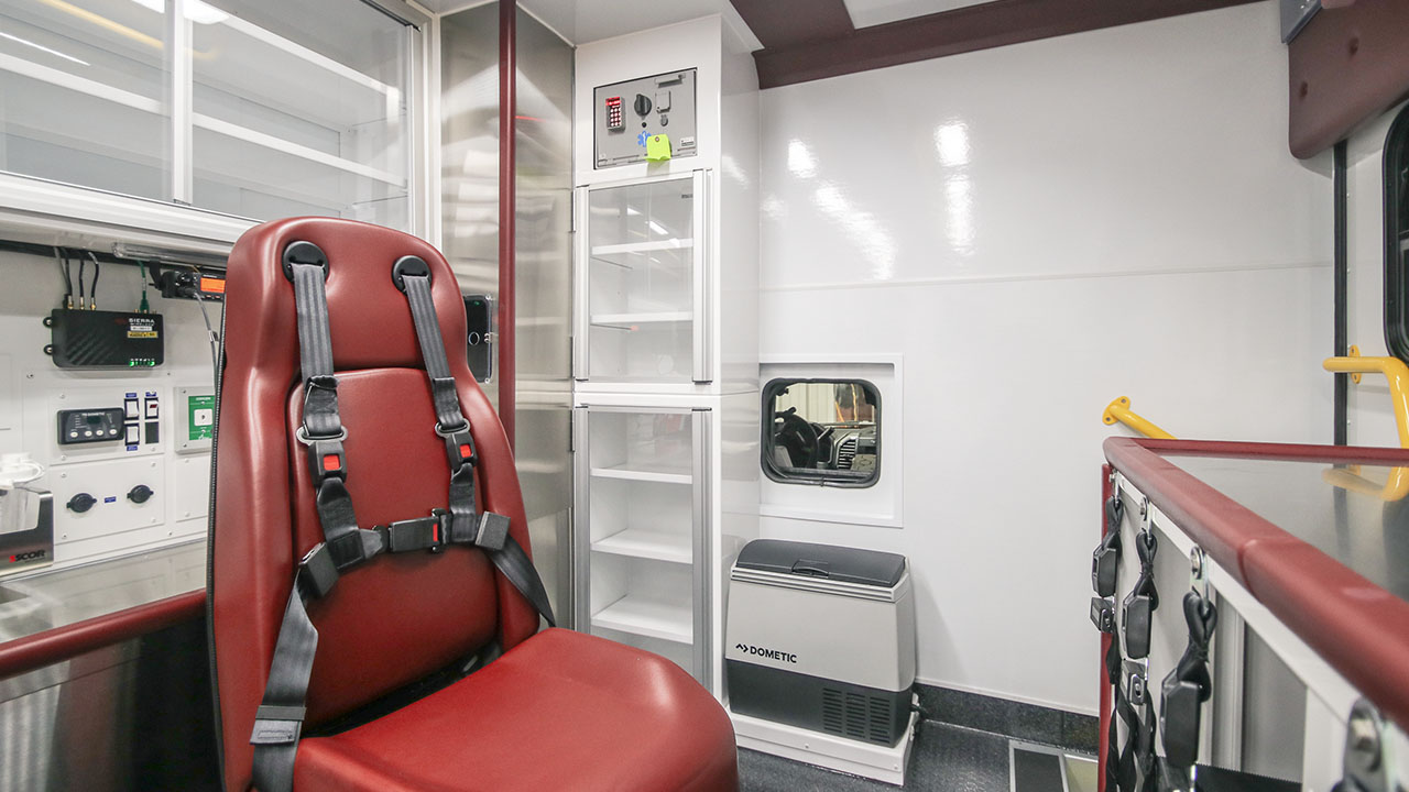 This custom 14 ft Type I EMS vehicle is mounted on a new Ford F-450 diesel chassis and features a MEPS under-hood generator and a LiquidSpring Suspension System. Features include our Door Forward Design, a Double Wide CPR Seat, Antimicrobial Grab Bars & a Stryker Power-LOAD cot retention system.