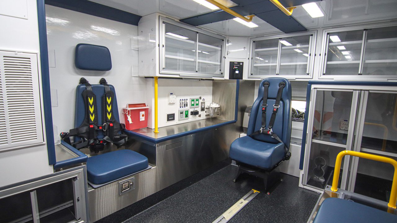 This custom 12 ft XT Type I EMS Vehicle is mounted on a new Dodge D4500 diesel chassis and features a MEPS Under-hood Generator and a LiquidSpring Suspension System. Features include a M-Series MedixSafe narcotics safe, LifeDefender cabinets by Austin Hardware, and an Engel fridge.