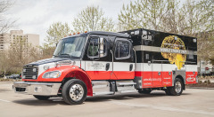 This 14 ft Mobile Stroke Unit (MSU) is mounted on a Freightliner M2 106 gasoline chassis and features a LiquidSpring™ suspension system. The MSU comes equipped with an integrated 16-slice OmniTom® portable CT scanner. The MSU also outfitted with state-of-the-art telemedicine instrumentation to help diagnose and treat stroke patients on-scene.